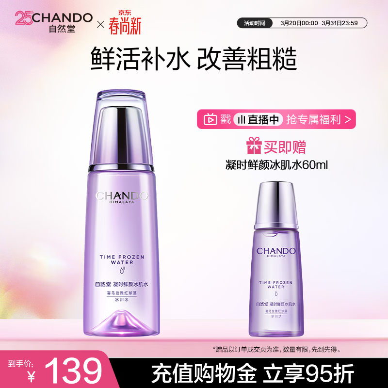 自然堂【周翊然同款】凝时鲜颜冰肌水160mL滋润型保湿淡化细纹生日