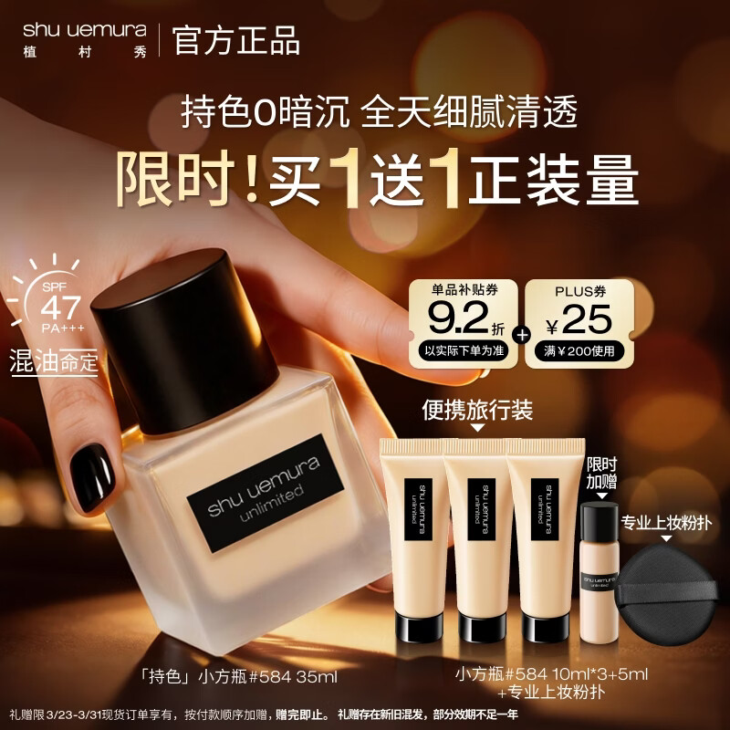 植村秀[第2代]小方瓶粉底液584 35ml遮瑕防晒提亮化妆品 生日礼物送女友
