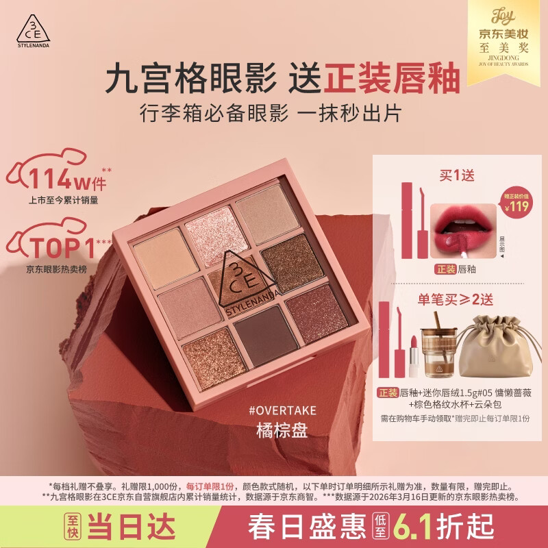 3ce九宫格九色眼影盘秋风落叶OVERTAKE橘棕盘哑光生日礼物送女友