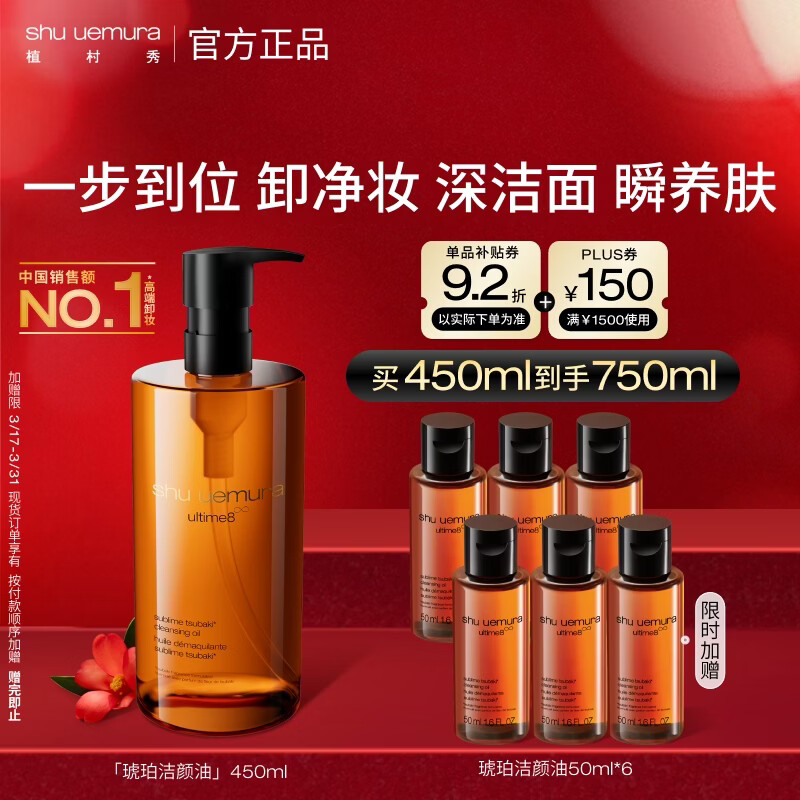植村秀琥珀卸妆油450ml 护肤洁颜油 温和清洁 细致毛孔 生日礼物送女友