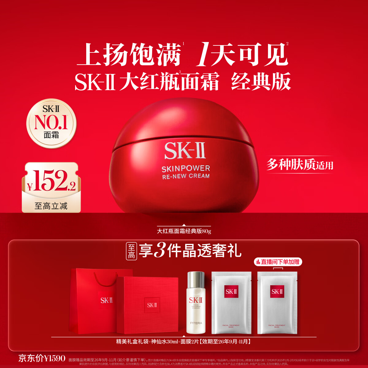 SK-II大红瓶面霜80g乳液抗皱紧致护肤品套装礼盒sk2化妆品生日礼物女