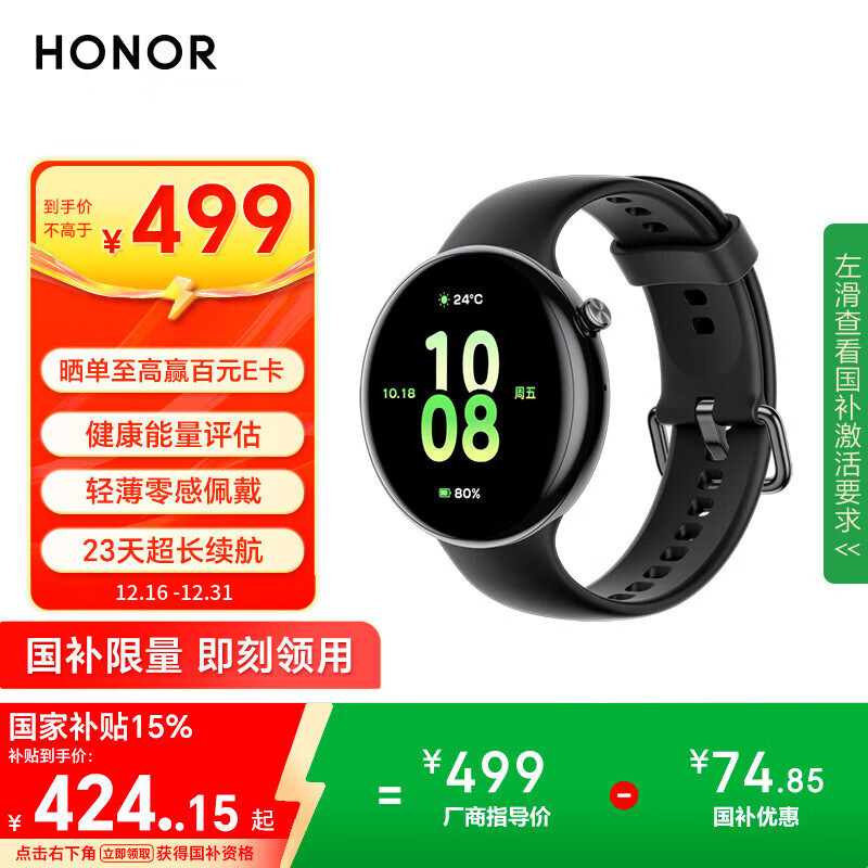 荣耀手表Fit 44mm【国家补贴】活力版 幻夜黑 超轻薄超长续航NFC智能运动手表 GS3i升级款男女表