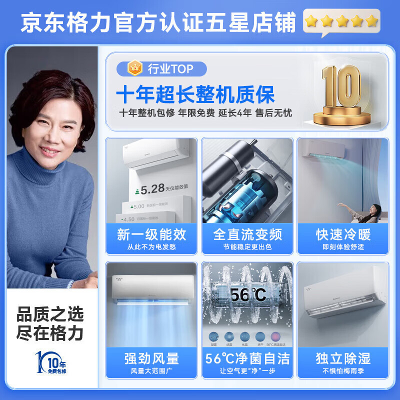 格力空调挂机天仪1.5匹大1匹快速冷暖独立除湿高温自清洁新一级能效变频冷暖卧室挂机空调以旧换新 天仪 1.5匹 一级能效