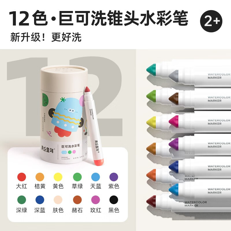 美乐童年儿童水彩笔可水洗12色24色画笔套装幼儿园小学生涂鸦彩色笔 锥头-12色