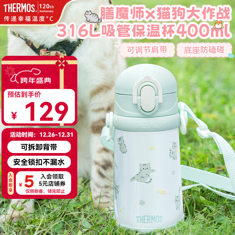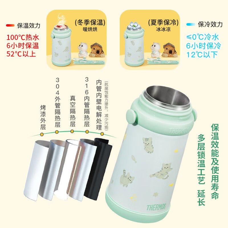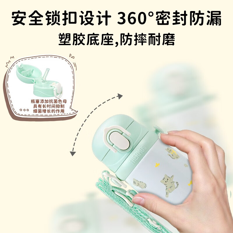 膳魔师(THERMOS)儿童保温杯大容量水杯316l不锈钢杯学生吸管杯运动水壶喝水杯子 薄荷绿吸管杯 400ml (2套吸管)