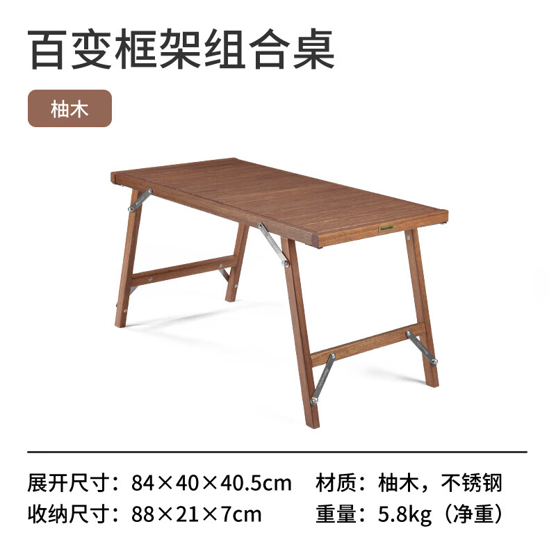 Naturehike挪客方忆IGT百变框架组合桌折叠桌 户外露营便携野餐桌烧烤可拆卸 柚木色