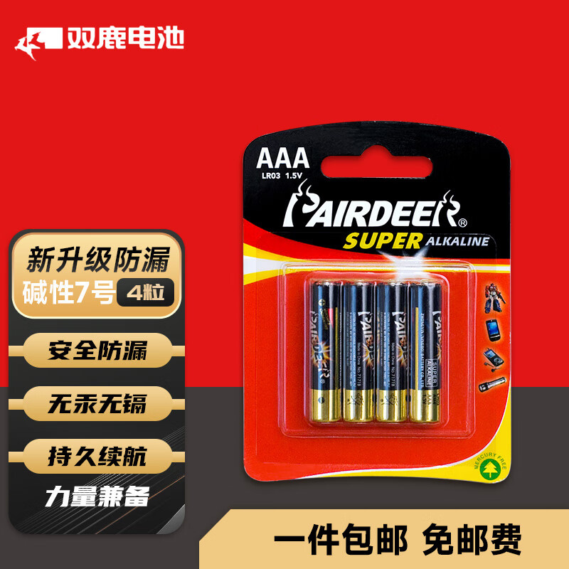 双鹿精品碱性7号电池4粒卡适用于遥控玩具/遥控器/鼠标键盘/手电筒/电子秤等 LR03/AAA 一件包邮