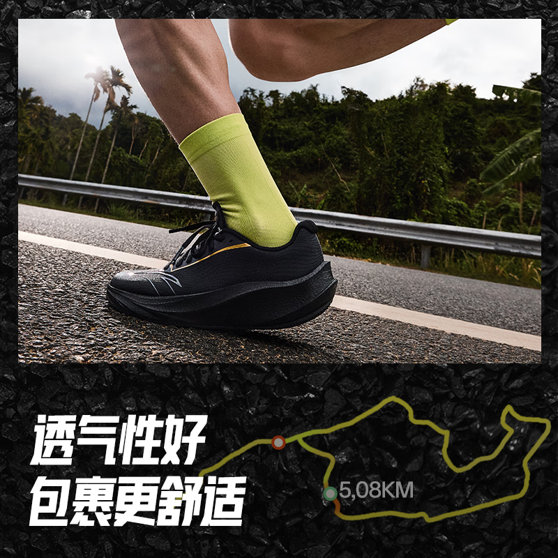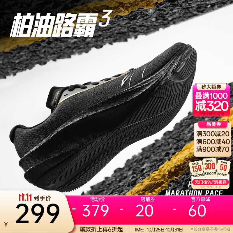 安踏柏油路霸3丨男鞋氮科技专业竞训训练鞋透气耐磨跑步鞋子男运动鞋 黑/金属金-3 42 (男8.5)