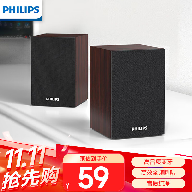 飞利浦(PHILIPS)SPA20 蓝牙音箱电脑音响桌面木质小音箱台式笔记本音响多媒体重低音家用游戏扩音器
