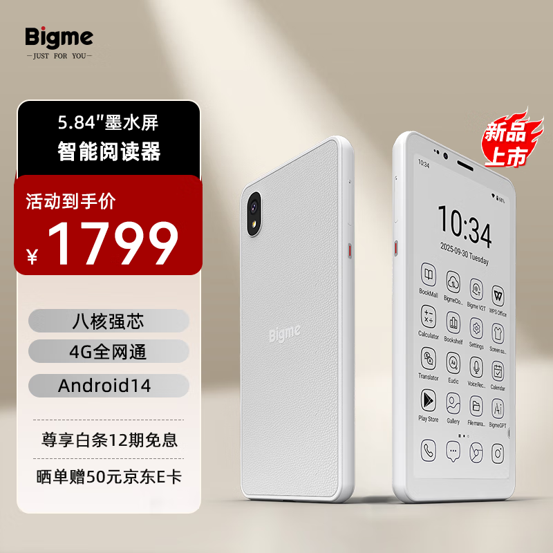 BIGME HiBreakS 5.84英寸墨水屏显示器 电纸书阅读平板 护眼便携 墨水屏阅读器安卓14开发系统 黑白款