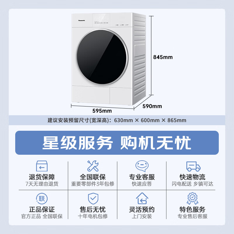 松下(Panasonic)【吴磊同款】白月光5.0 10kg热泵烘干机 干衣机家用 NH-81FR1