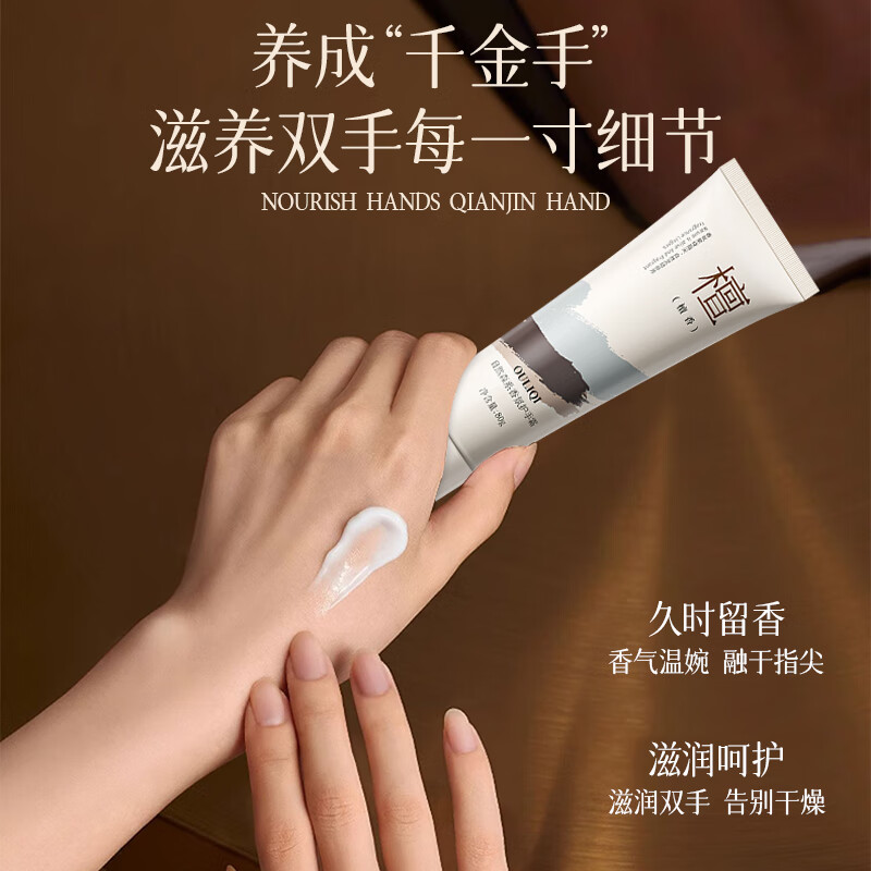 欧丽琦(OULIQI)香氛护手霜滋润补水保湿清爽不油腻秋冬防干防冻裂舒缓肌肤润手霜 自然森系香氛护手霜【檀香】 80g x1支