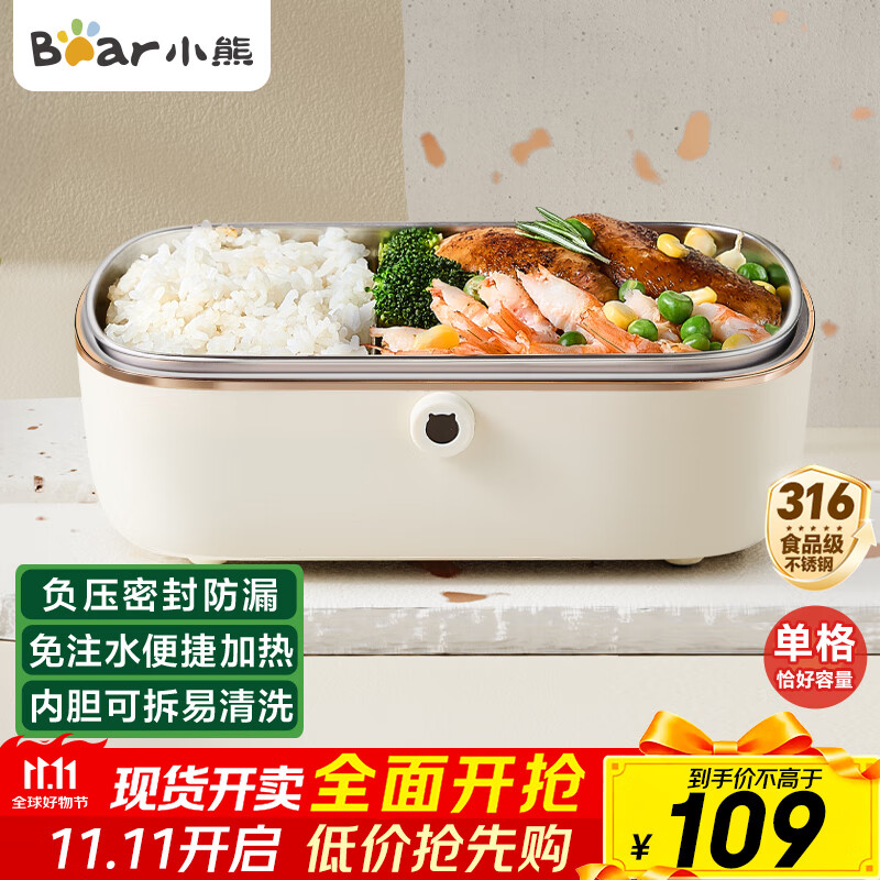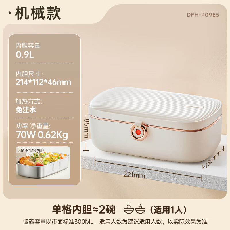 小熊(Bear)电热饭盒 加热饭盒 保温饭盒可加热 上班族免注水自热饭盒 插电饭盒316L热饭神器便当盒DFH-P09E5