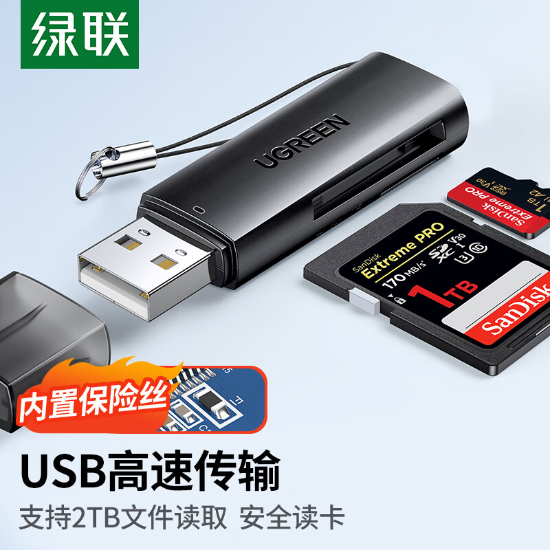 绿联 读卡器多功能二合一USB2.0/3.0高速读取 支持TF/SD型相机行车记录仪监控摄像头内存卡手机存储卡 USB2.0【SD/TF双卡单读】