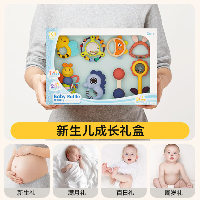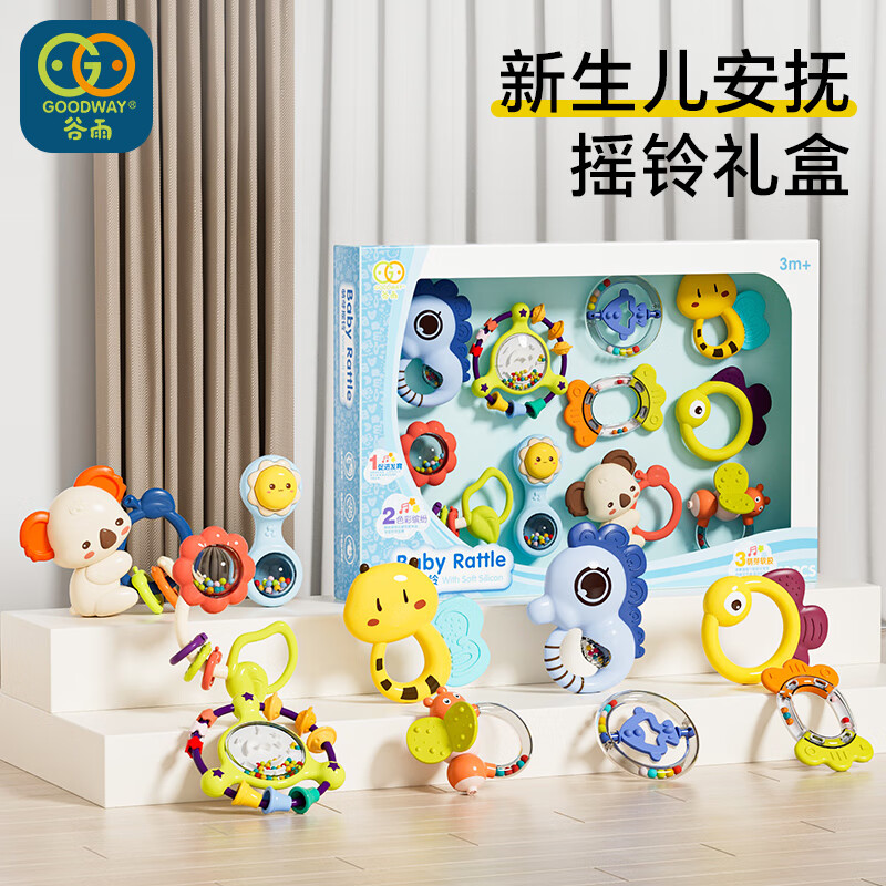 谷雨(GOODWAY)婴幼儿玩具手摇铃牙胶0-1岁3新生儿礼盒6-12个月宝宝见面满月礼物