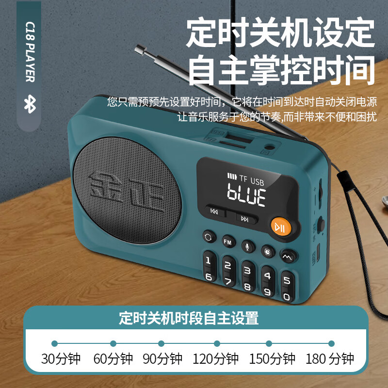 金正C18收音机老人随身听便携式小型半导体多功能播放器可插卡充电可定时关机录音评书戏曲故事机