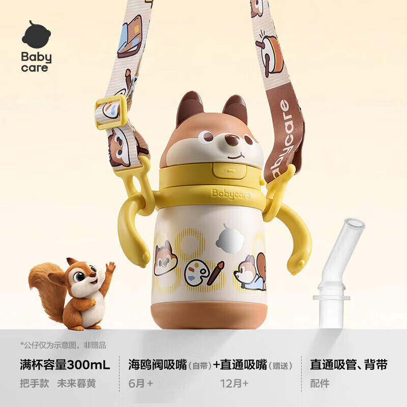 babycare儿童保温杯婴儿小松鼠宝宝1-3岁不锈钢吸管水杯壶学生上学300ml