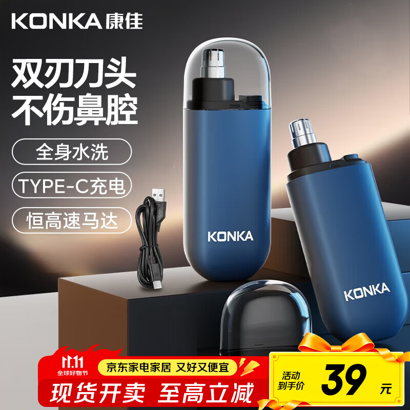 康佳(KONKA)电动鼻毛修剪器男士专用迷你便携鼻毛剪低音剃鼻毛器快速充电持久续航圆拱刀头不伤鼻腔节日礼物