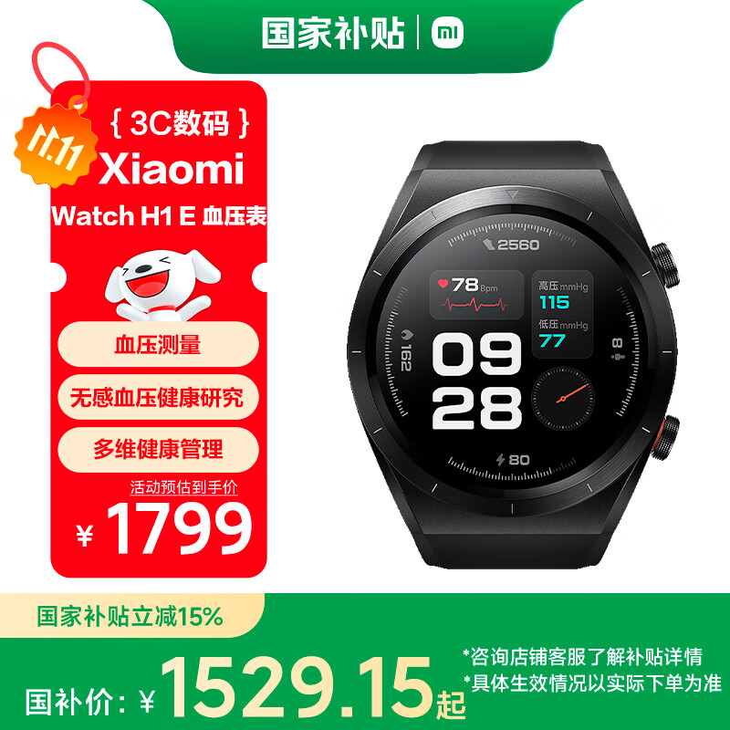 小米(MI)腕部血压记录仪 国家补贴 小米血压手表 血压测量 全天血氧监测 智能手表 Xiaomi Watch H1 E