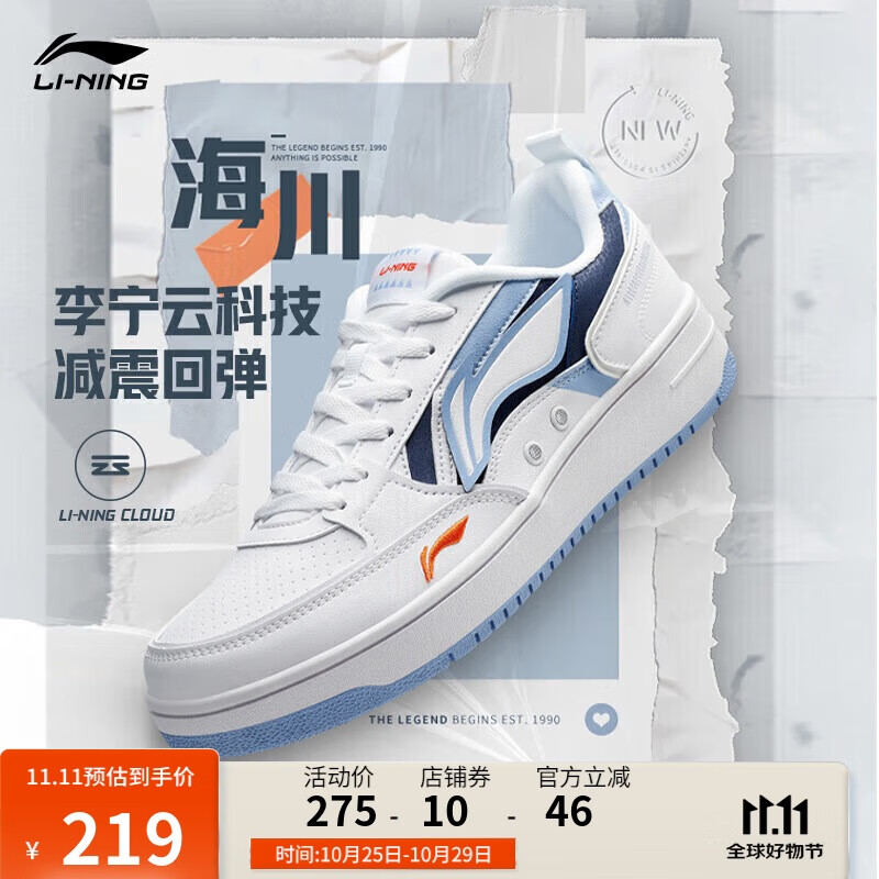 李宁海川丨经典休闲鞋男鞋回弹柔软轻量粘贴标识运动鞋AGCT377