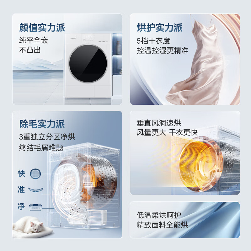 松下(Panasonic)【李佳琦同款】白月光5.0 超薄洗烘套装纯平全嵌 10kg滚筒洗衣机全自动+热泵烘干机81F1+81FR1