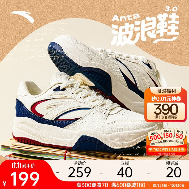 安踏波浪鞋3.0板鞋女鞋新款鞋子女厚底耐磨情侣复古潮流运动鞋休闲鞋