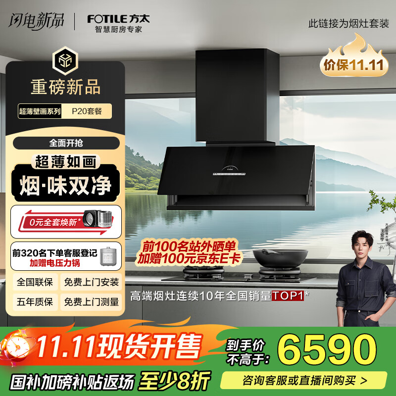 方太(FOTILE)【旗舰新品】全新超薄壁画油烟机平嵌深腔30风量净化空气烟灶套装P20+02-TEK20烟灶联动国家补贴