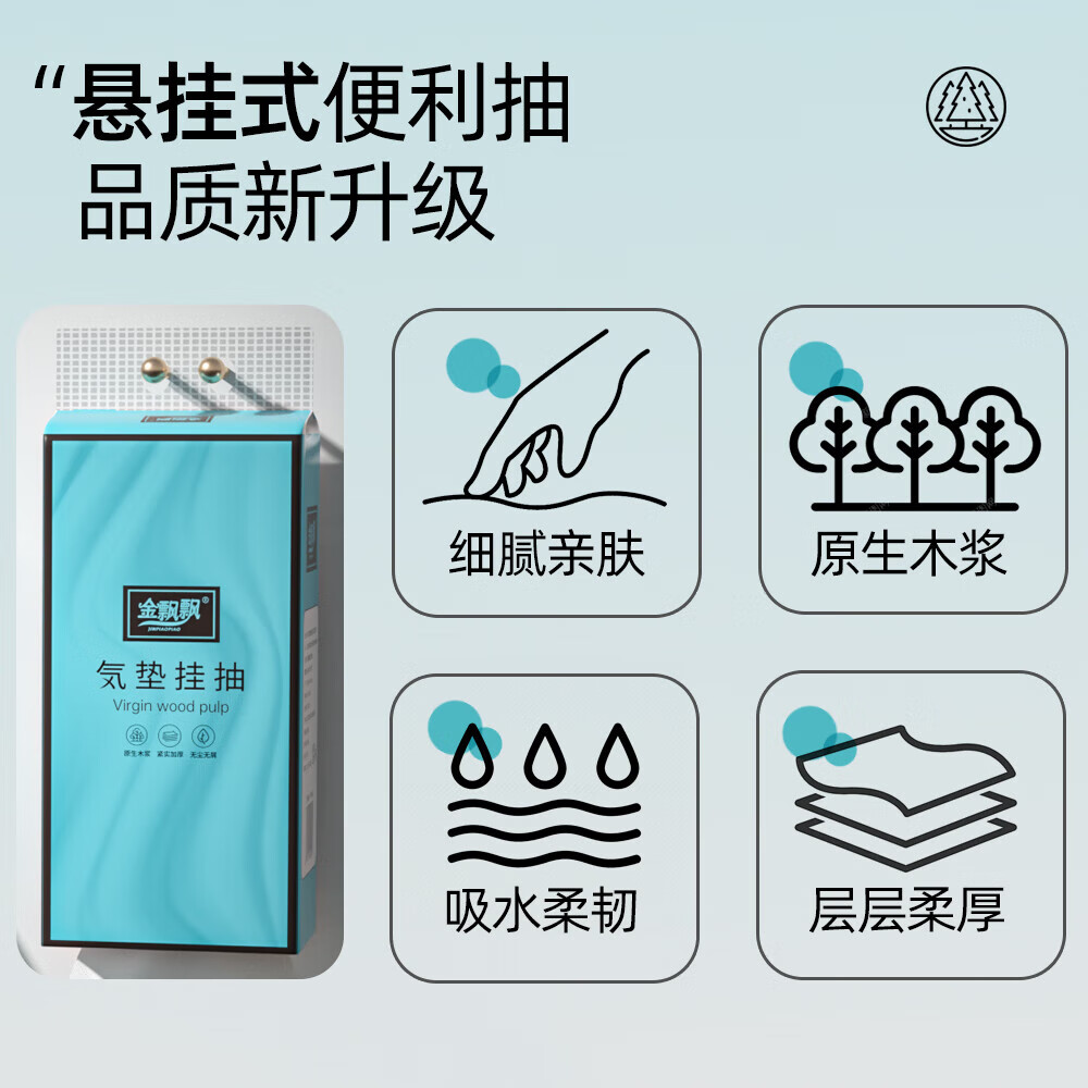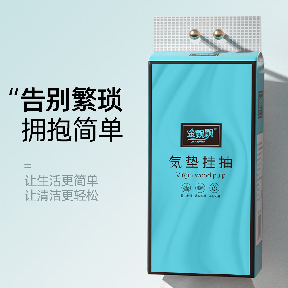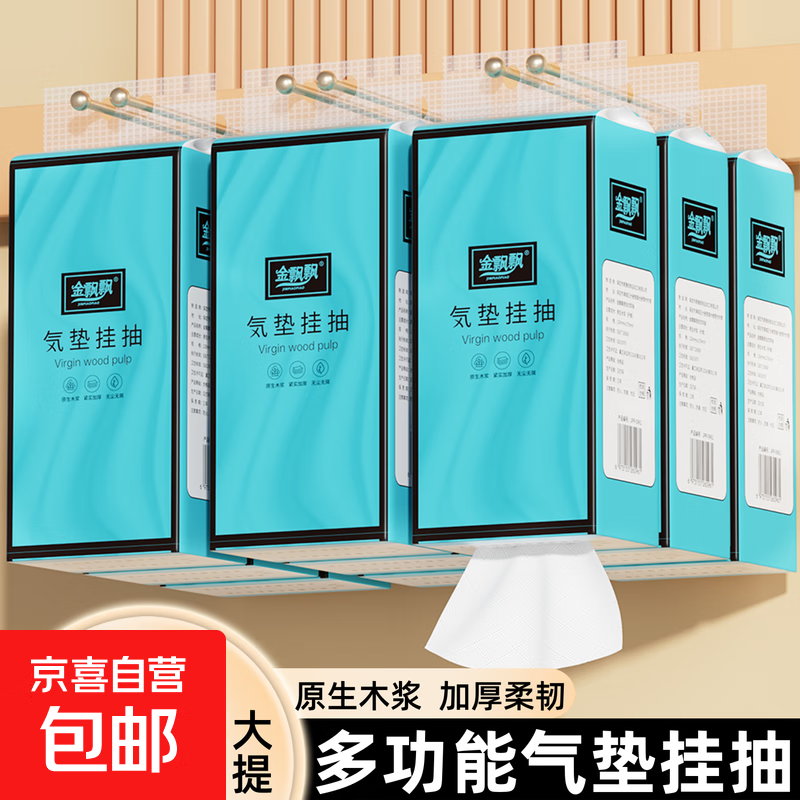 金飘飘悬挂式抽纸大包提挂式底部抽纸平板卫生纸整箱批发200抽/提 【海湾蓝系列挂抽】2大提 悬挂式气垫抽纸:送无痕挂钩