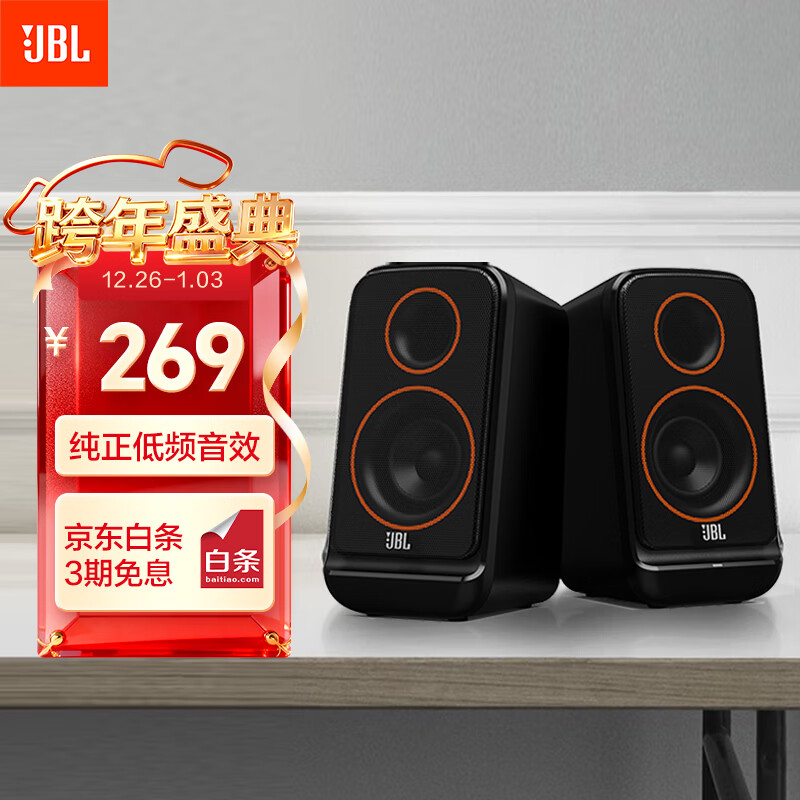 JBL PS3500蓝牙音箱 国家补贴 桌面音响电脑台式机家用室内蓝牙音响游戏低音炮 生日新年礼物 黑色