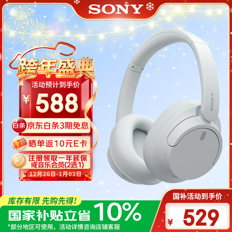 索尼(SONY)WH-CH720N头戴式无线蓝牙耳机 AI智能主动降噪重低音 网课英语学习游戏电脑耳麦 白色