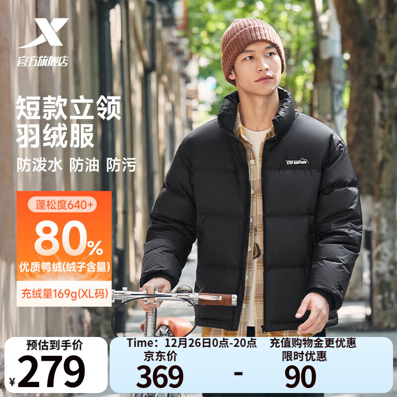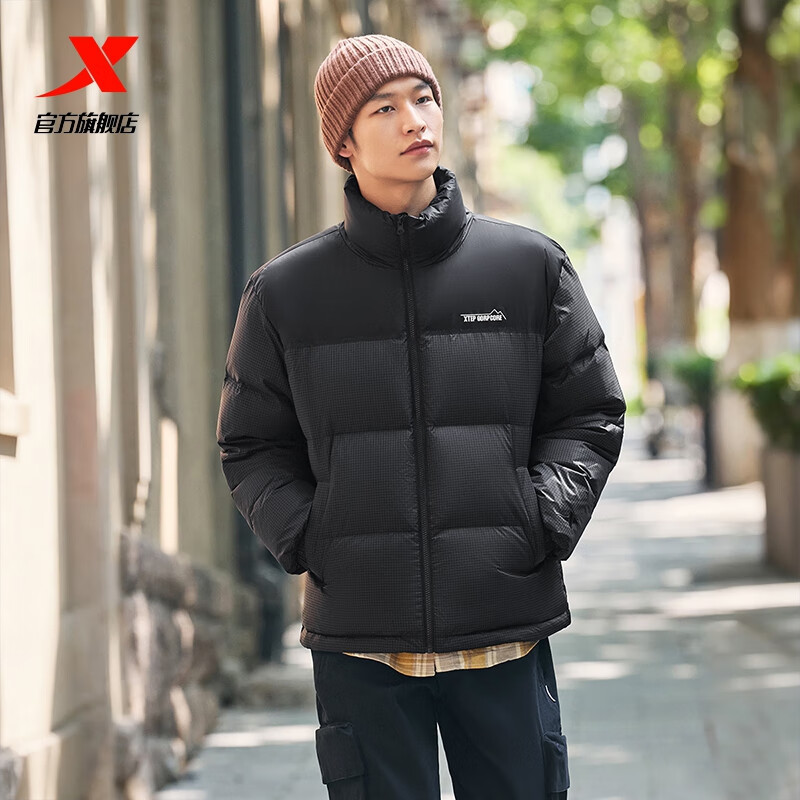 特步(XTEP)80%绒短款羽绒服男女款冬季新款保暖防风加厚外套男 正黑色-0144-80%绒 XL