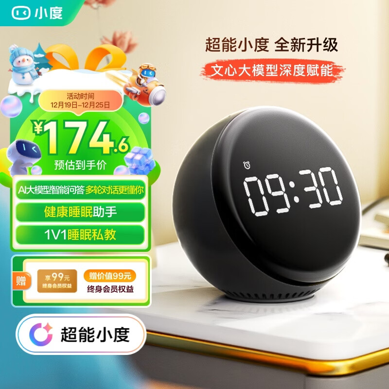 小度智能闹钟音箱 Pro【超能小度】大屏数字显示 床头创意闹钟语音交互遥控家电音响 早教机故事机