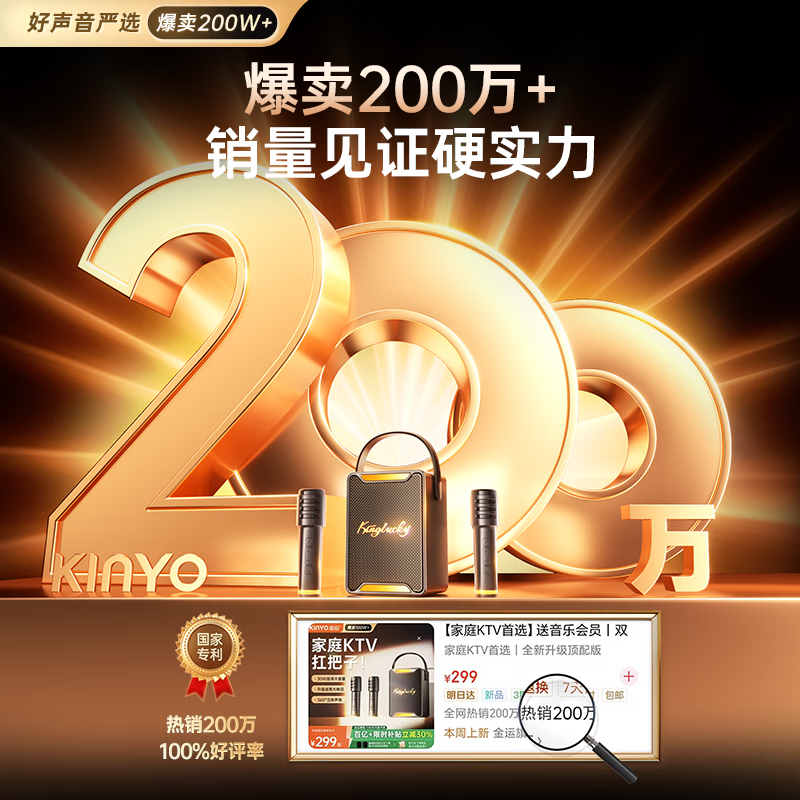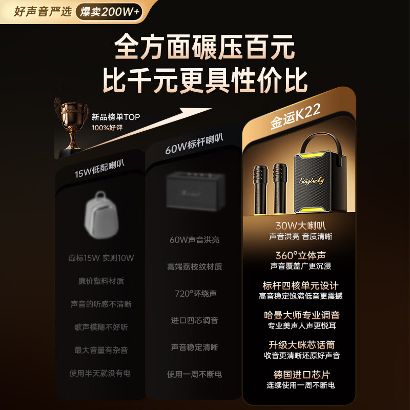 金运【热销200W+】k歌麦克风音响一体机唱歌话筒家用ktv套装可连电视家庭卡拉OK神器户外智能音箱礼物 【26年顶配】送K歌/影视双会员丨双麦-赠防喷话筒套