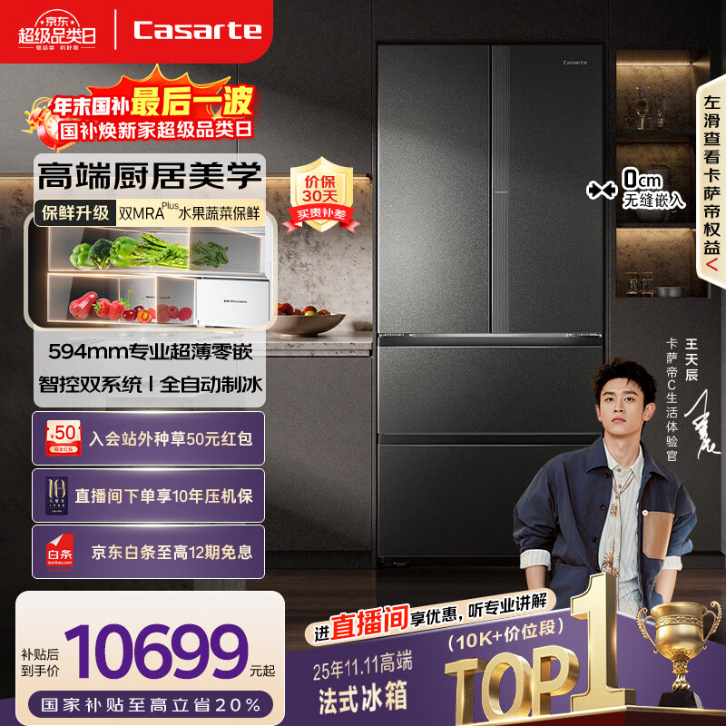 卡萨帝(Casarte)揽光520L法式多门冰箱594mm超薄零嵌入式全自动制冰双系统主动除菌BCD-520WGCFDMGCTU1国家补贴