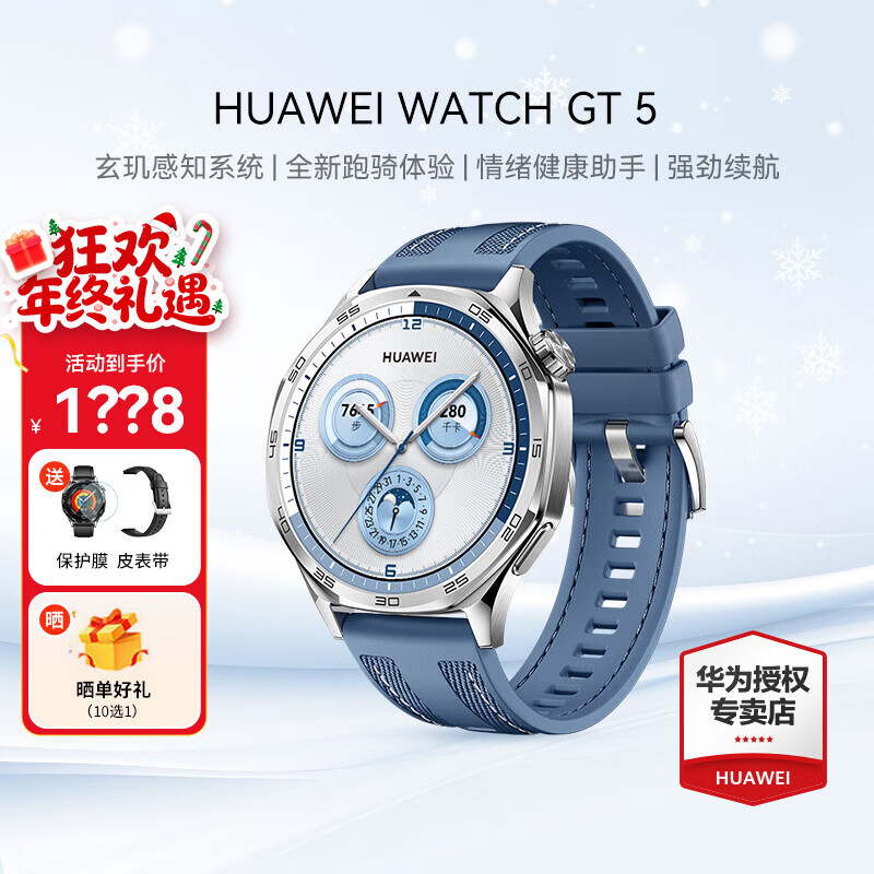 华为(HUAWEI)手表WATCH GT 5【咨询享优惠】运动智能两周续航蓝牙通话体温心率血氧健康监测送男女朋友礼物6pro 46mm托帕蓝【皮表带+贴膜】