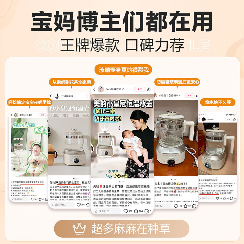 美的(Midea)全玻璃恒温水壶恒温壶婴儿冲奶烧水壶电热水壶养生壶1.5L TN15B01