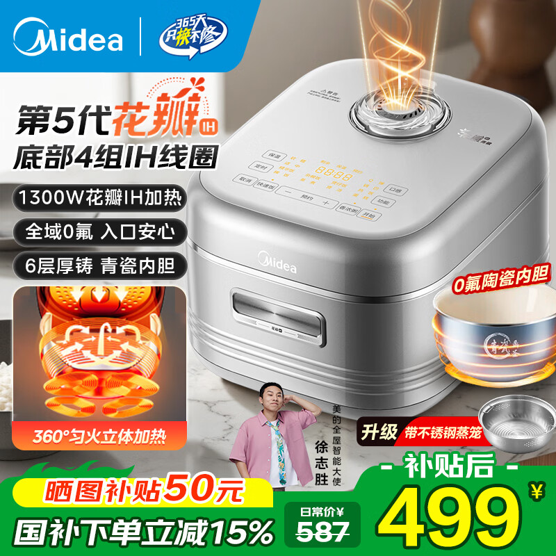 美的花瓣IH立体加热电饭煲电饭锅2-3-4-5-6人用 0氟陶瓷内胆一级抗菌 家用小米粥快速饭柴火饭电煮饭煲 【1300w花瓣IH加热】25年新款0氟青瓷 4L