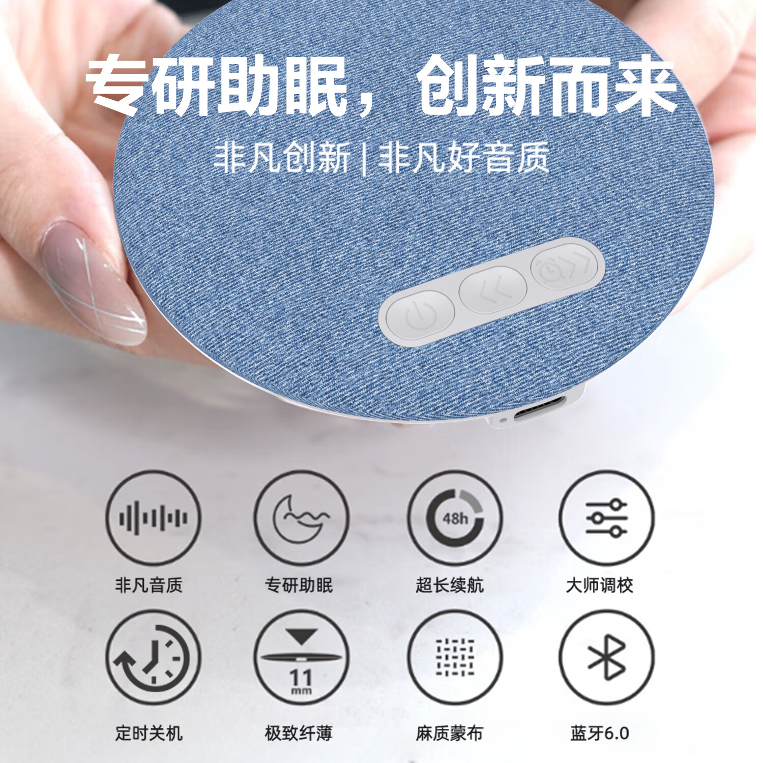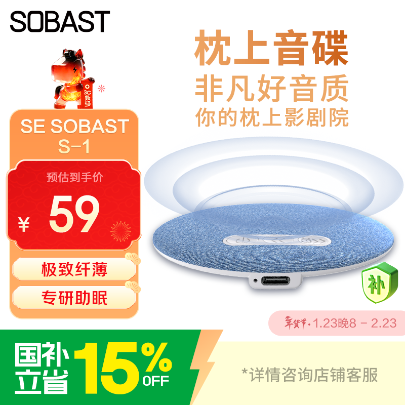SE SOBAST S-1 枕下音碟枕上睡眠音响超薄枕头音响听歌助眠音箱白噪音枕边音箱蓝牙 蓝色