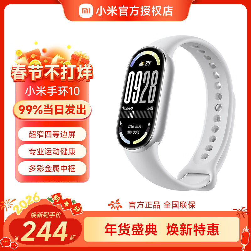 小米(MI)手环10/NFC版 智能手环 专业运动健康 监测睡眠管理 心率血氧长续航运动 新年礼物 送男友送女友 手环10 银色+水凝膜
