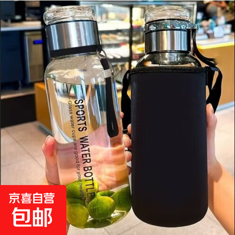 野餐水具吨吨杯大容量玻璃茶水分离杯家用外带便捷水杯 大容量吨吨杯【1000ml+被套】
