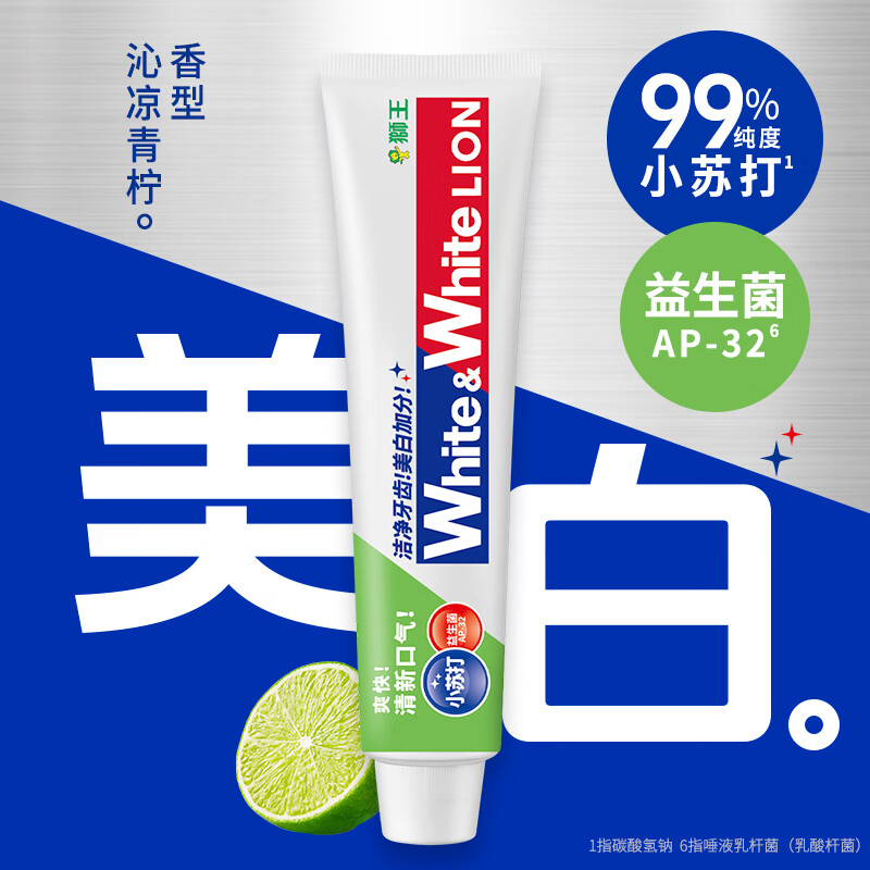 狮王大白葡萄柚小苏打牙膏氨基酸益生菌美白牙膏淡化牙渍亮白牙齿 白桃+青柠+葡萄(共6支720g口味随机