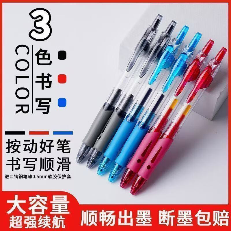 按动式1008中性笔 0.5mm子弹头签字笔办公笔 黑色 6支