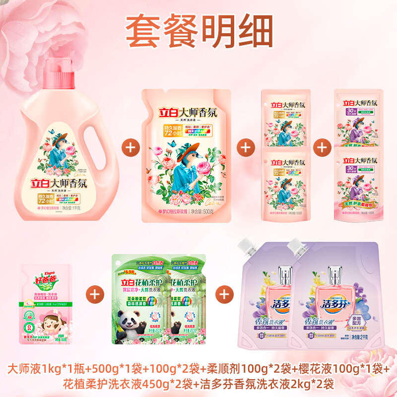 立白大师香氛洗衣液玫瑰花香机洗手洗衣液柔顺护衣洁净护色 洗衣液套餐A