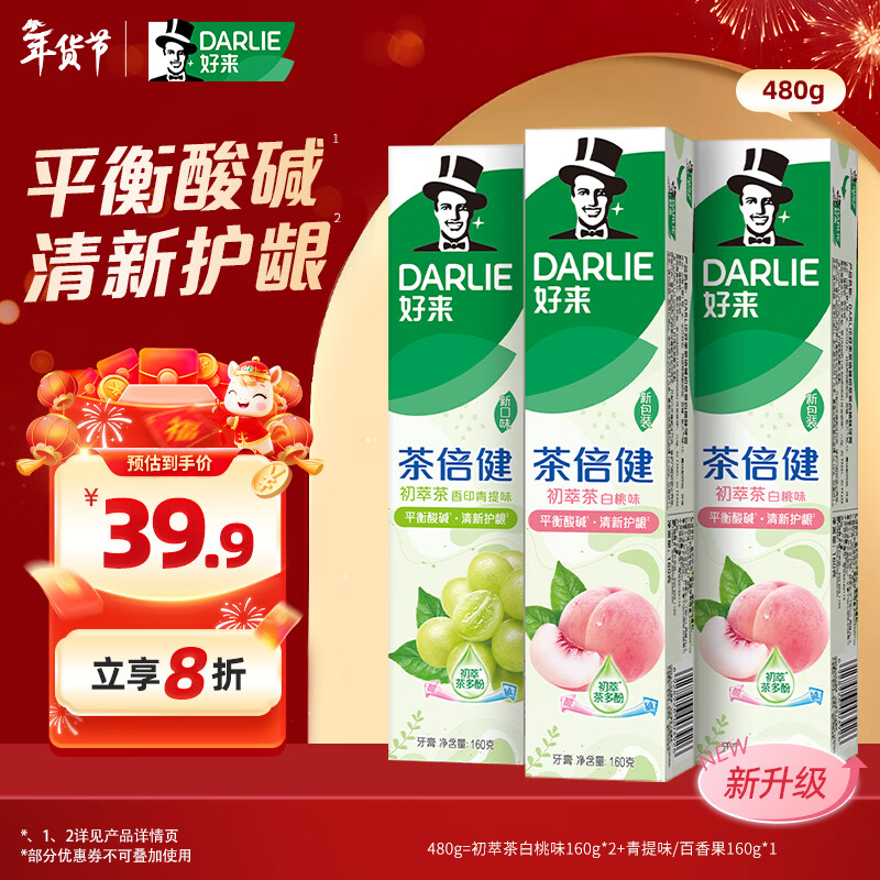 好来(原黑人)茶倍健果味牙膏清新口气护龈洁白净齿3支共480g