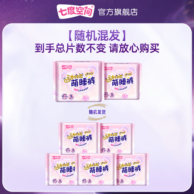 七度空间裤型卫生巾夜用动物君萌睡裤安睡裤拉拉裤安心裤姨妈巾 M-L码 10条 超薄萌睡