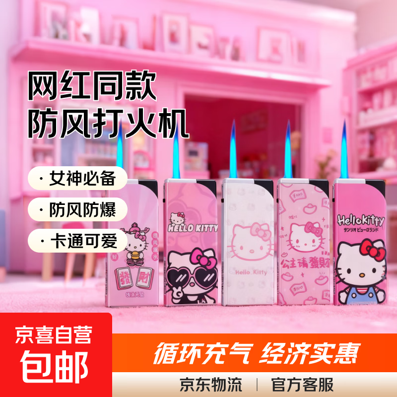 【kitty猫】网红金属直冲防风充气打火机送女友女生送女神礼物 kitty猫 5支