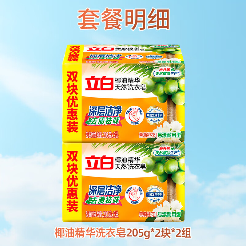 立白椰油精华洗衣皂肥皂透明皂去渍亮丽不伤手家用实惠装 椰油皂205g*4块