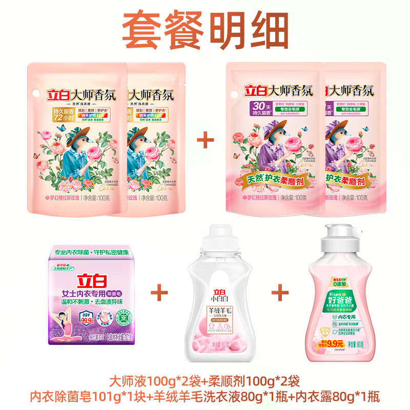 立白大师香氛洗衣液持久留香手洗机洗低泡易漂炫彩柔顺护衣家用防串色 机洗+手洗+内衣洗套餐7件套