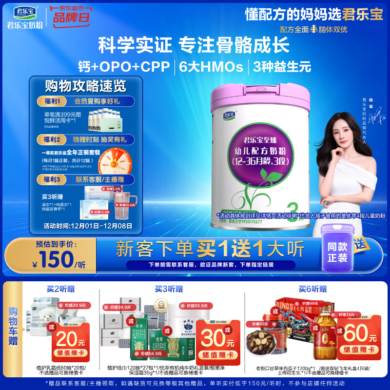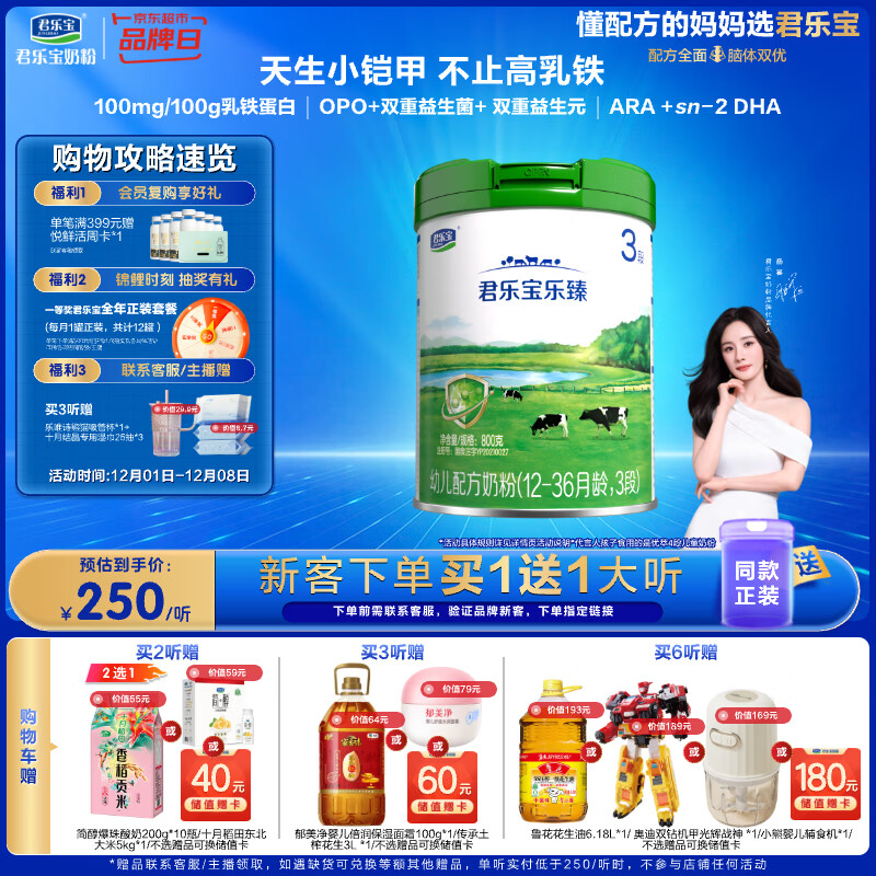 君乐宝(JUNLEBAO)乐臻3段幼儿配方奶粉(12-36月龄)800g 专利opo+乳铁蛋白
