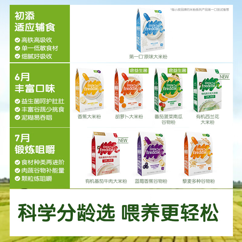 小皮(Little Freddie)米粉高铁双有机 婴儿宝宝辅食新鲜原装进口低敏米糊6到12个月以上 【4到6月初尝】原味高铁有机大米粉